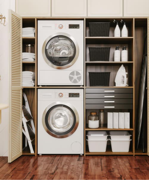 Smart laundry cabinetry that maximizes storage and improves workflow in any size space.